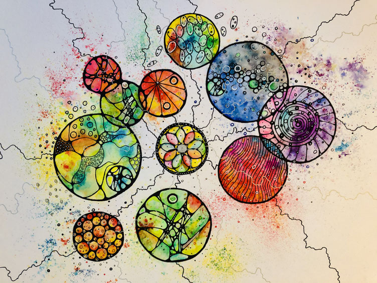 Vier bis sechs Wochen nach dem Workshop wird es noch ein weiteres Zoom-Meeting geben, in dem die Teilnehmer ihre Erfahrungen und Zeichnungen/Malereien, die als "Hausaufgabe" nach dem Workshop entstanden sind, teilen dürfen.